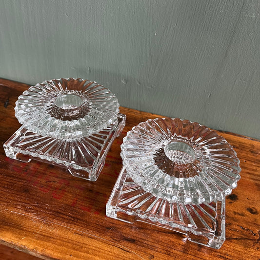 Vintage Heisey Square Glass Tapered Candle Holders