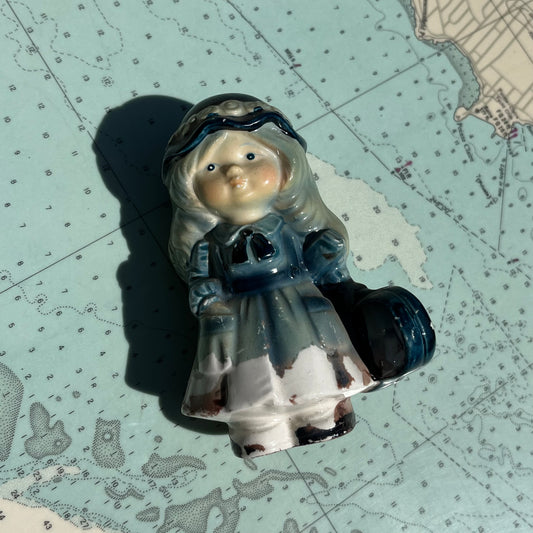Vintage Ceramic Blonde and Blue Girl with Guitar Figurine