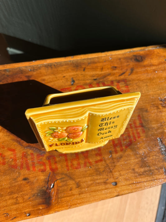 Vintage 70s Bless This Messy Desk Pen Caddy