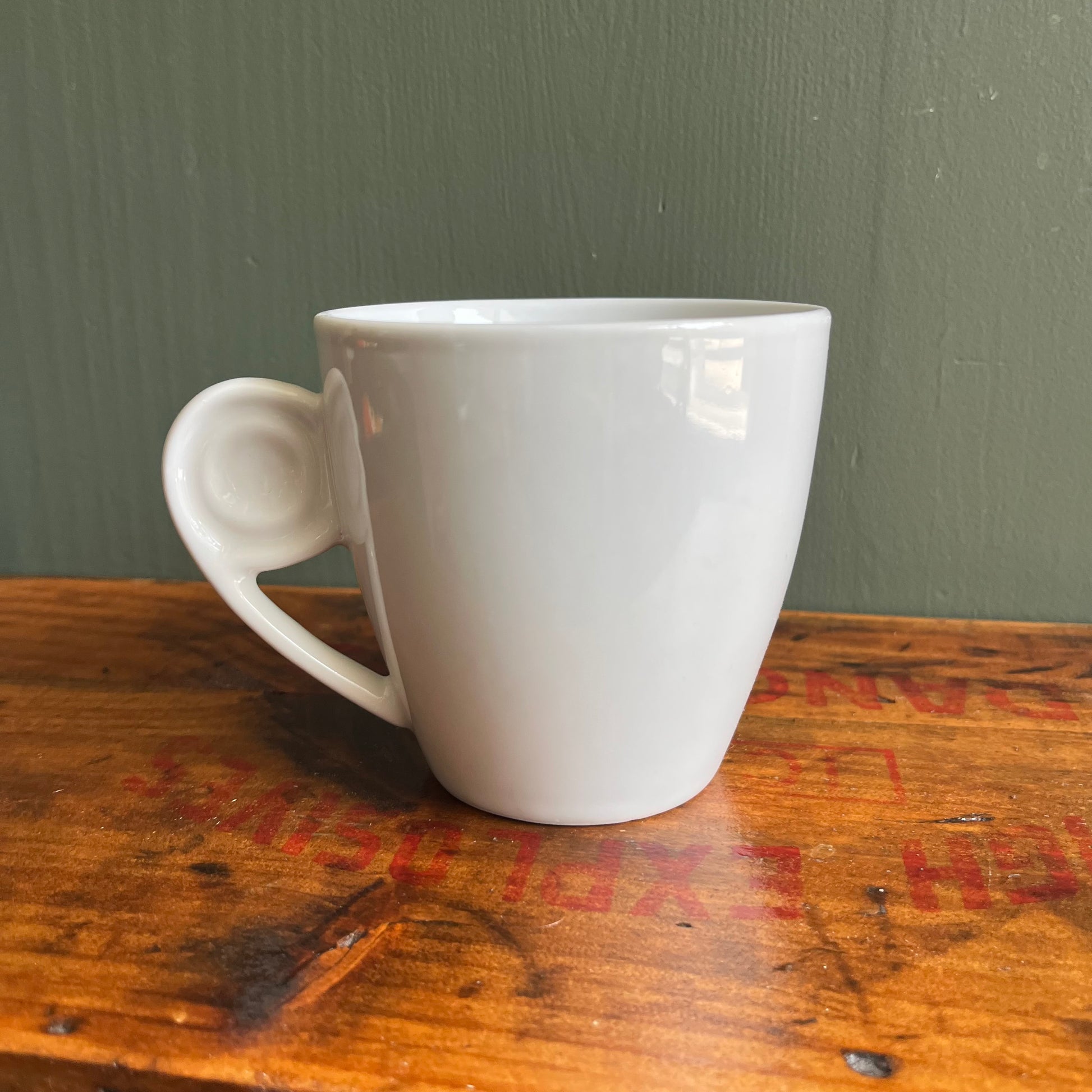 Hello Kitty Ceramic Mug with funky swirl handle. Excellent condition, no notable flaws. Measures 5" wide with handle, 3.75" without, 3.5" tall.