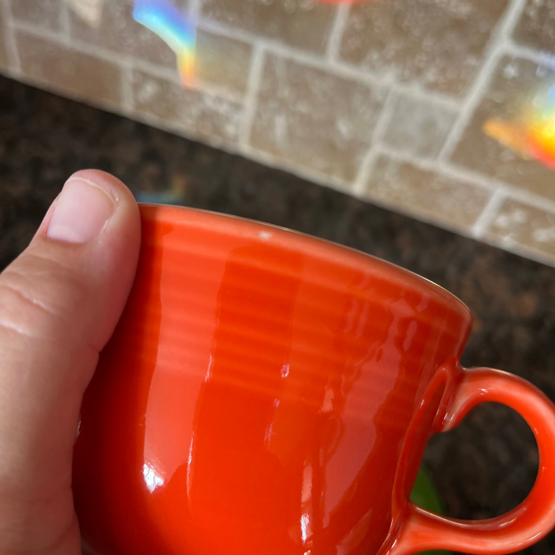 Homer Laughlin Multi Color Tea Cup and Saucer Set. Missing yellow saucer to match with teacup. Very good used condition, small imperfections shown in photos.