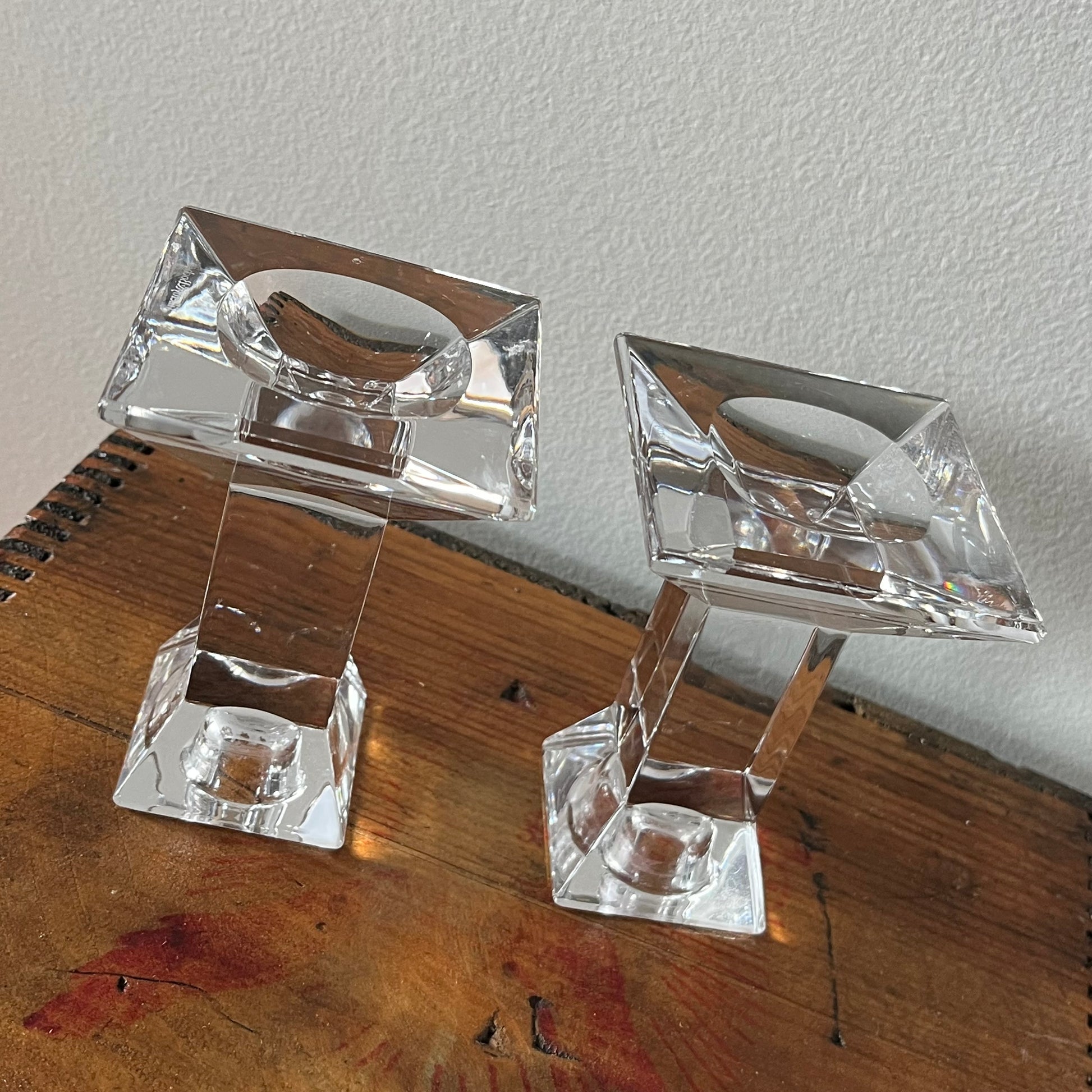 Villeroy & Bach Clear Glass Tapered Candle Holders. Excellent condition, no signs of wear. Each measures 4" tall, 2.75" square base.