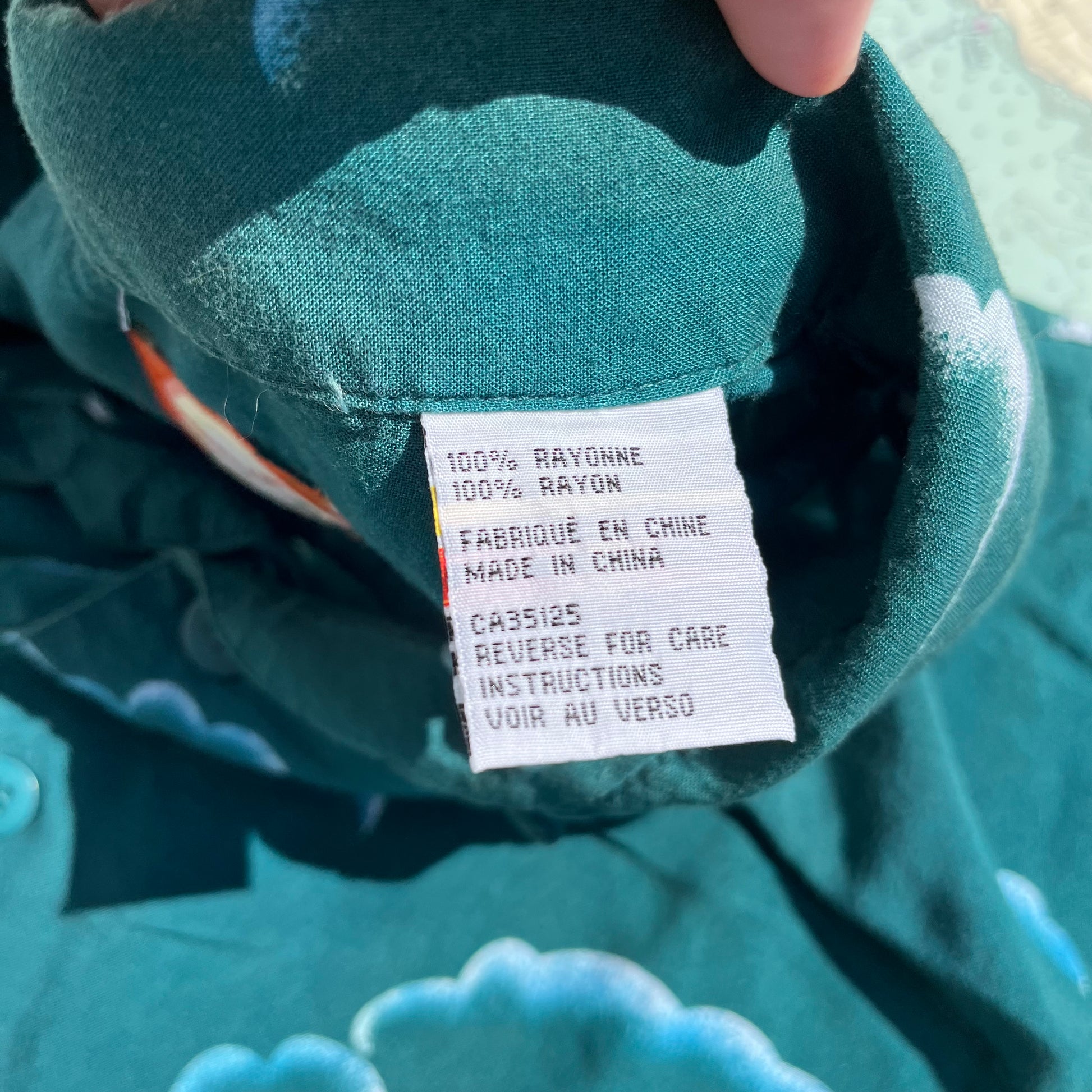 Vinage Bermuda Cruz Hawaiian surf shirt. Button up, great print! Tag with size has been cut, would say it fits as a large. 100% rayon. Measures 20" across shoulders, 21" pit to pit, 27" long.