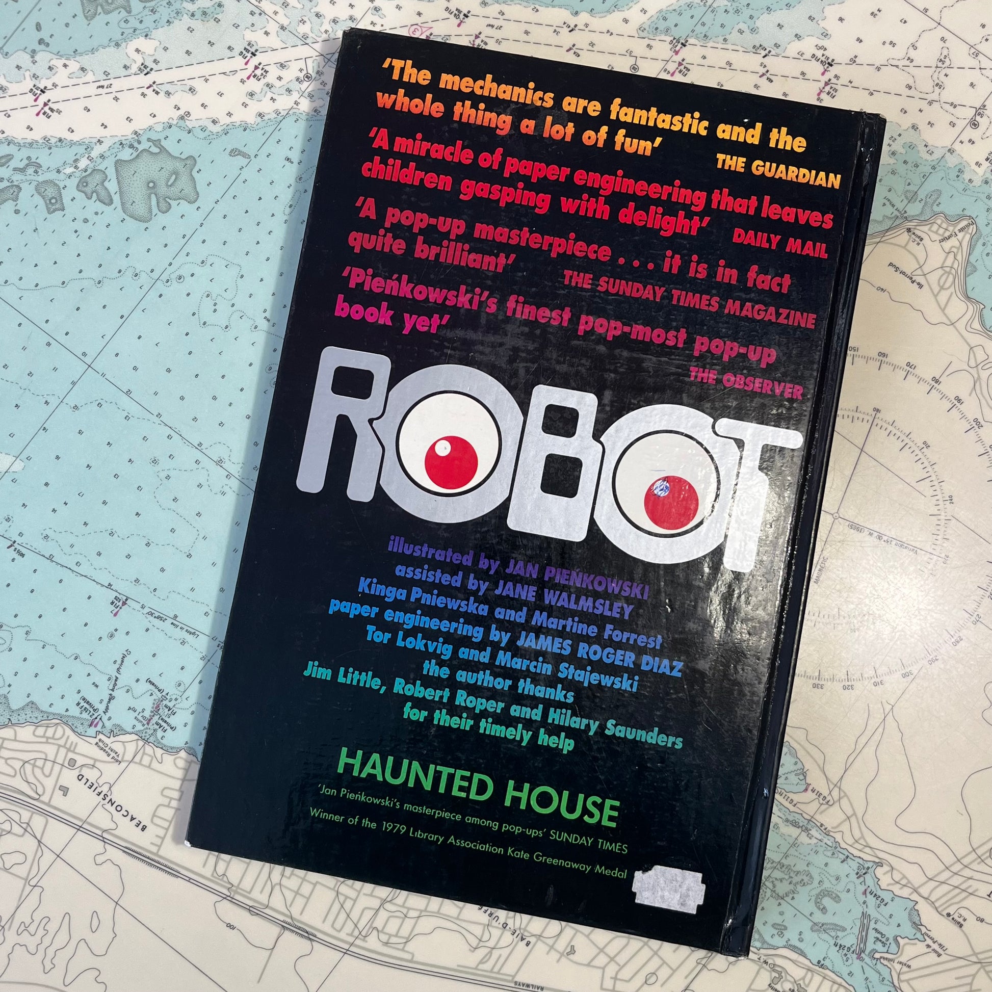 Vintage 1981 Jan Pienkowski Robot Pop Up Book. Very good used condition, some markings on cover. Most pop ups work, page 2 has a disconnect somewhere, otherwise all working. Book measures 12" x 8" x 1".