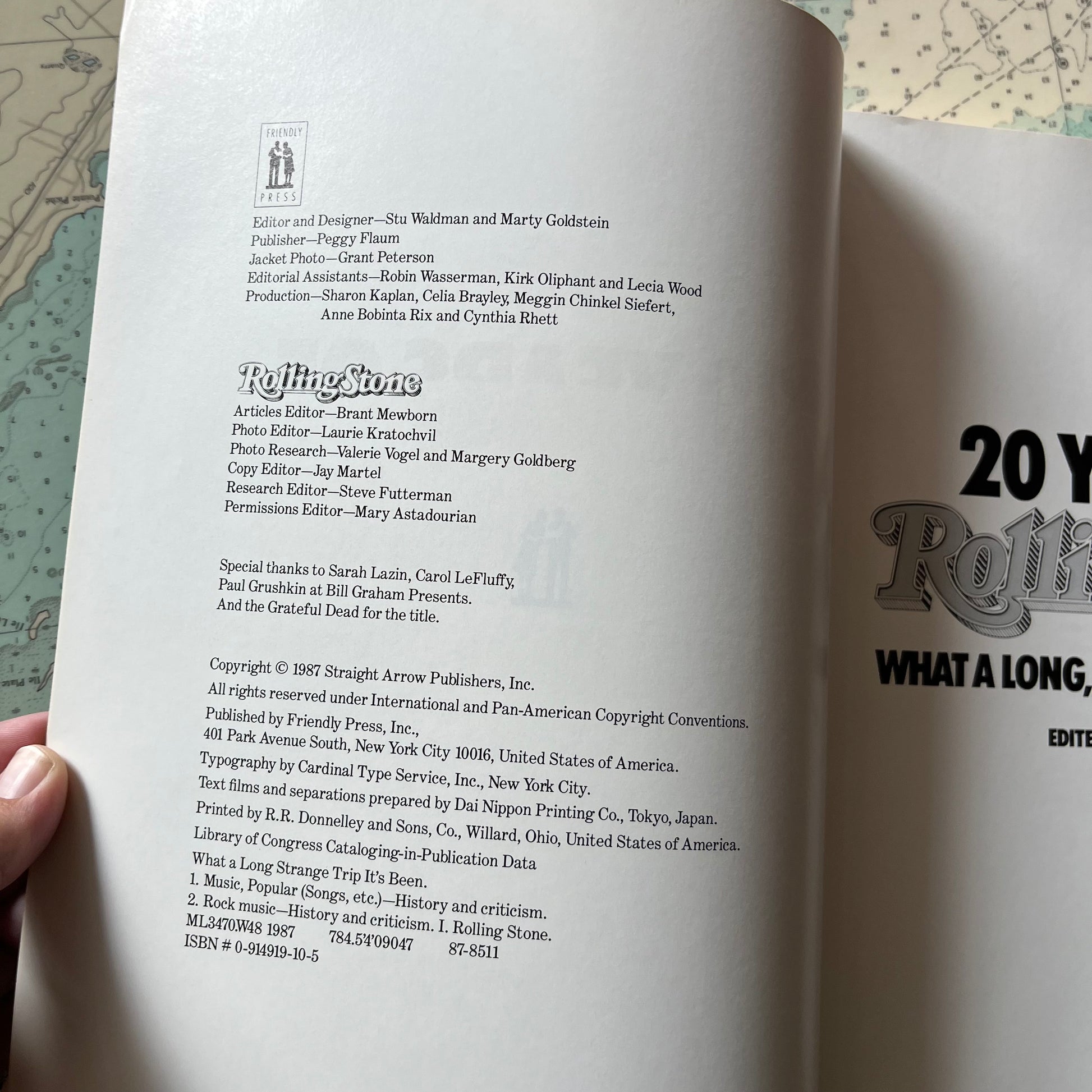 Vintage 1987 20 Years of Rolling Stone What a Long, Strange Trip It's Been. Softcover, fantastic collections of editorials and photos from the first two decades of Rolling Stone magazine. Excellent condition, no notable flaws. Measures 8.5" x 11" x 1".