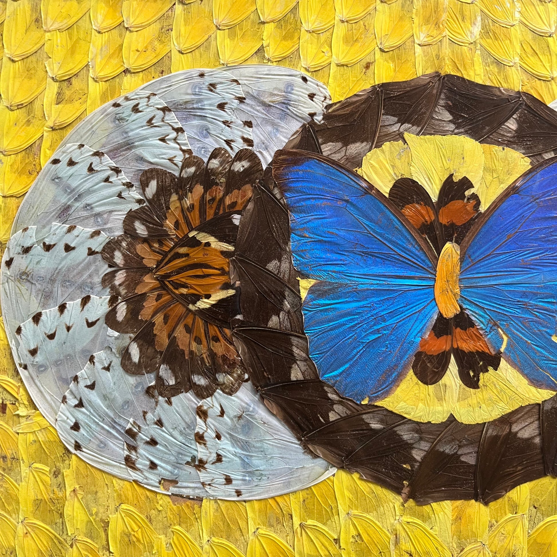 Vintage 40s Brazillian Butterfly Inlay Tray with Bamboo Coasters