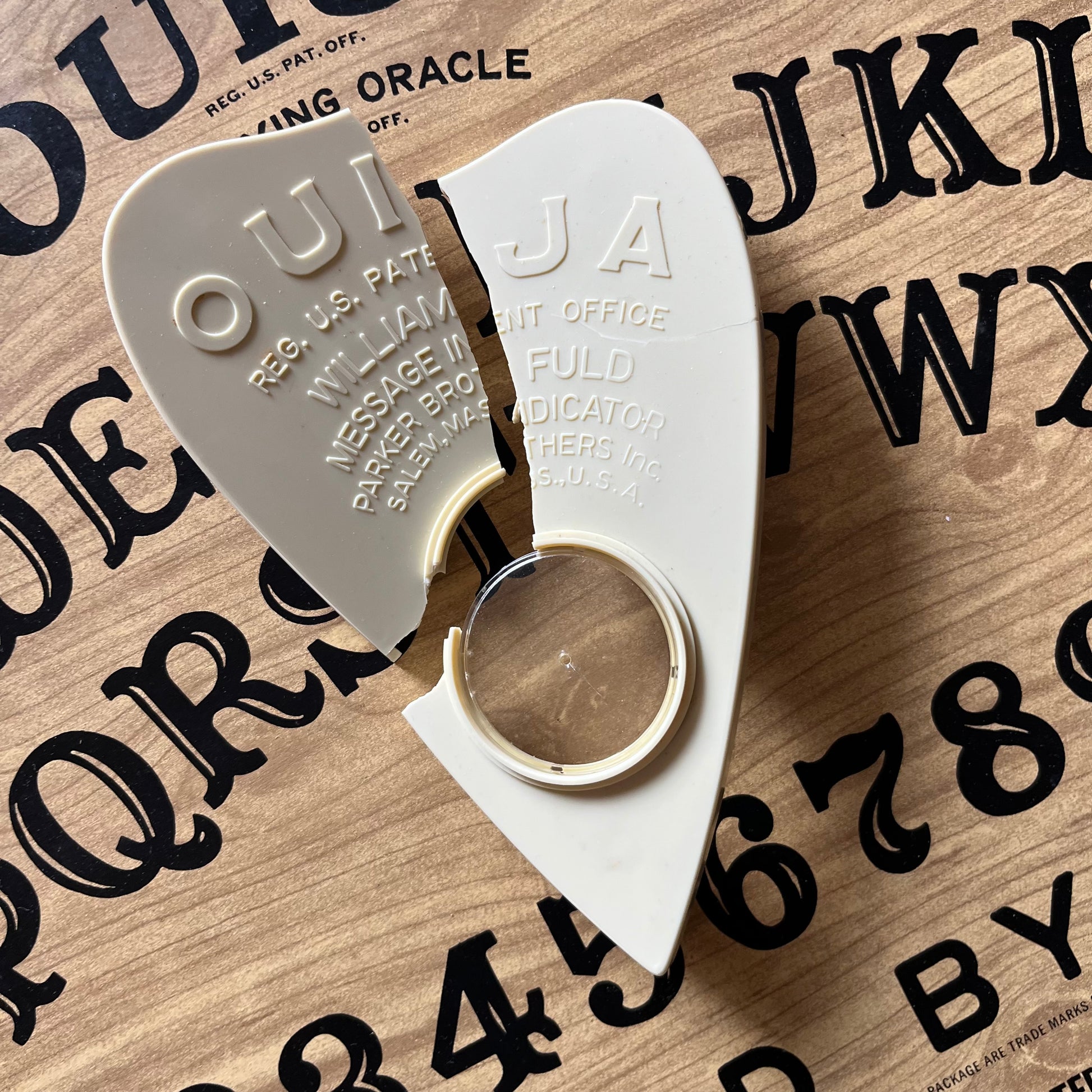 Vintage 70s Ouija Board - Parker Brothers mystifying oracle game. Awesome throwback piece! Planchette has been broken - if only it could speak! Can be re-glued easily - see photos for details. Box has some signs of wear as well.
