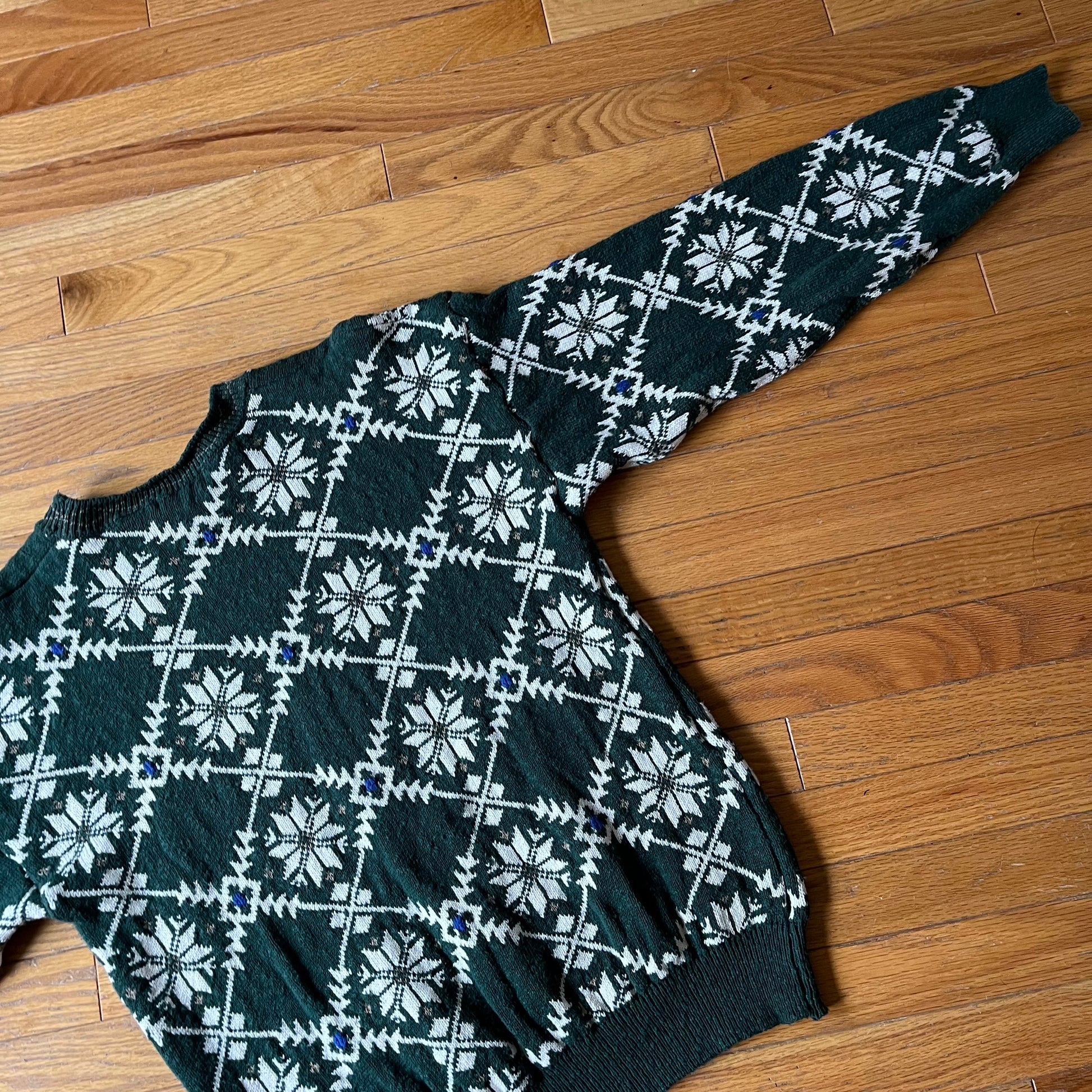 Vintage Claiborne Cotton Knit Sweater. Very good used condition, see photos for details. Measures 24" across shoulders, 22" pit to pit, 27" long.