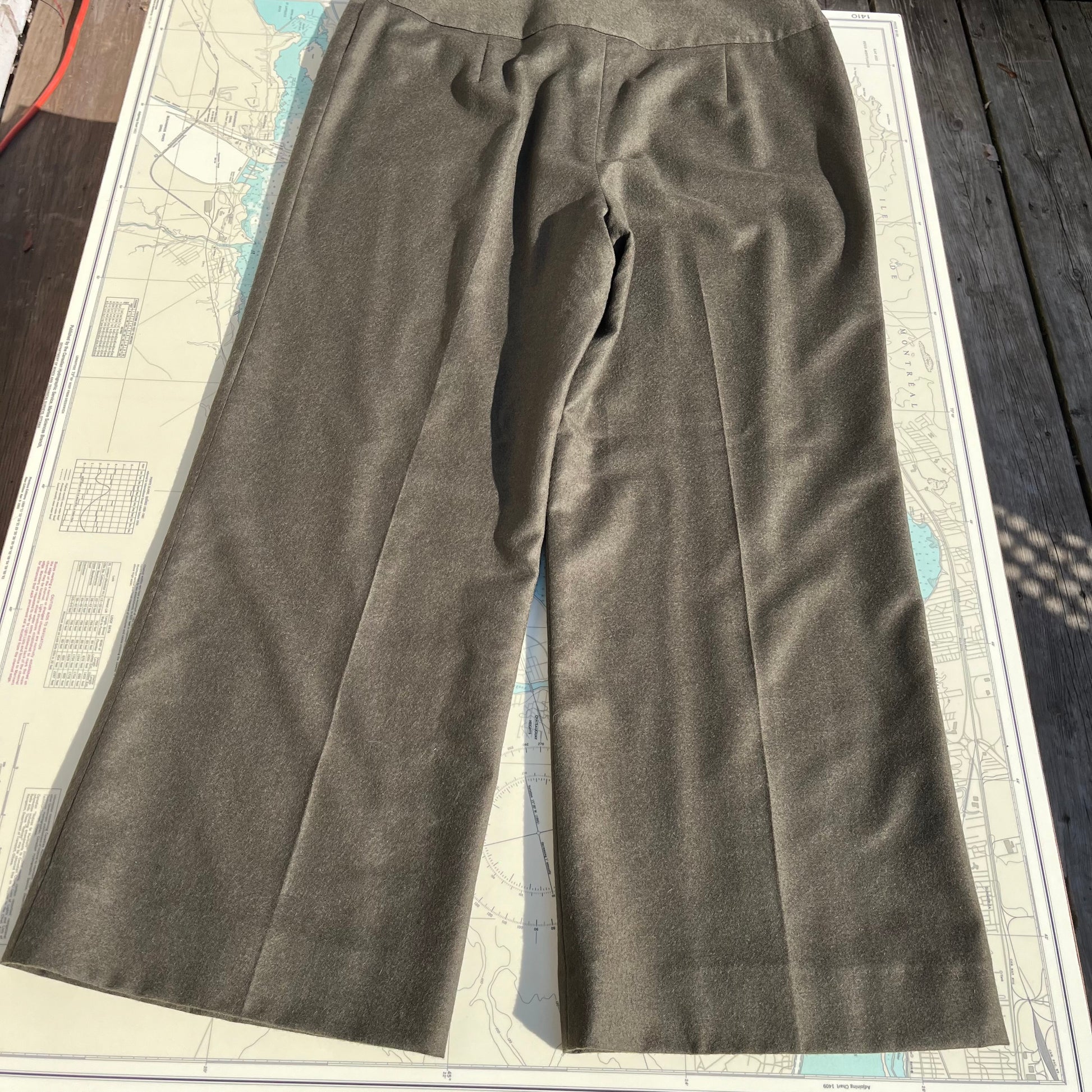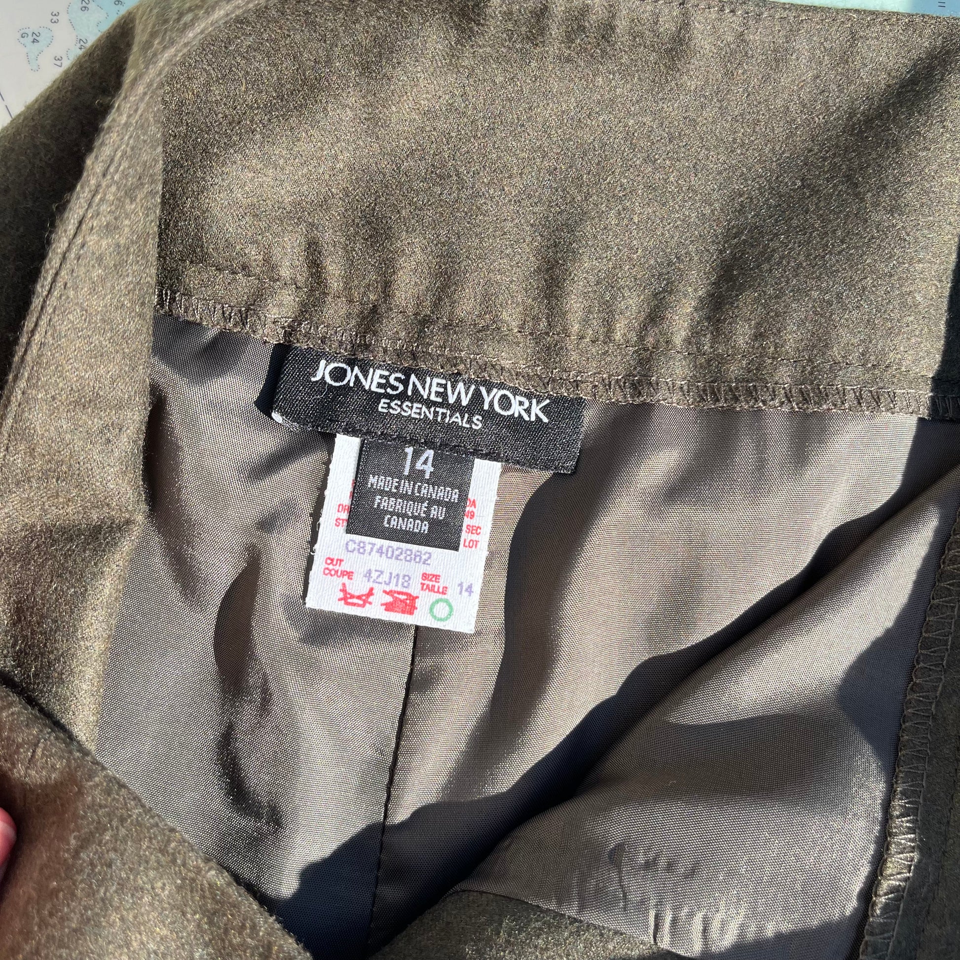 Vintage 90s / early 00s Jones New York wide leg trousers. Two small pockets, 92% wool, 8% cashmere. Tagged as a size 14, measures 17" across waist, 22" hips, 13" rise, 27" inseam.