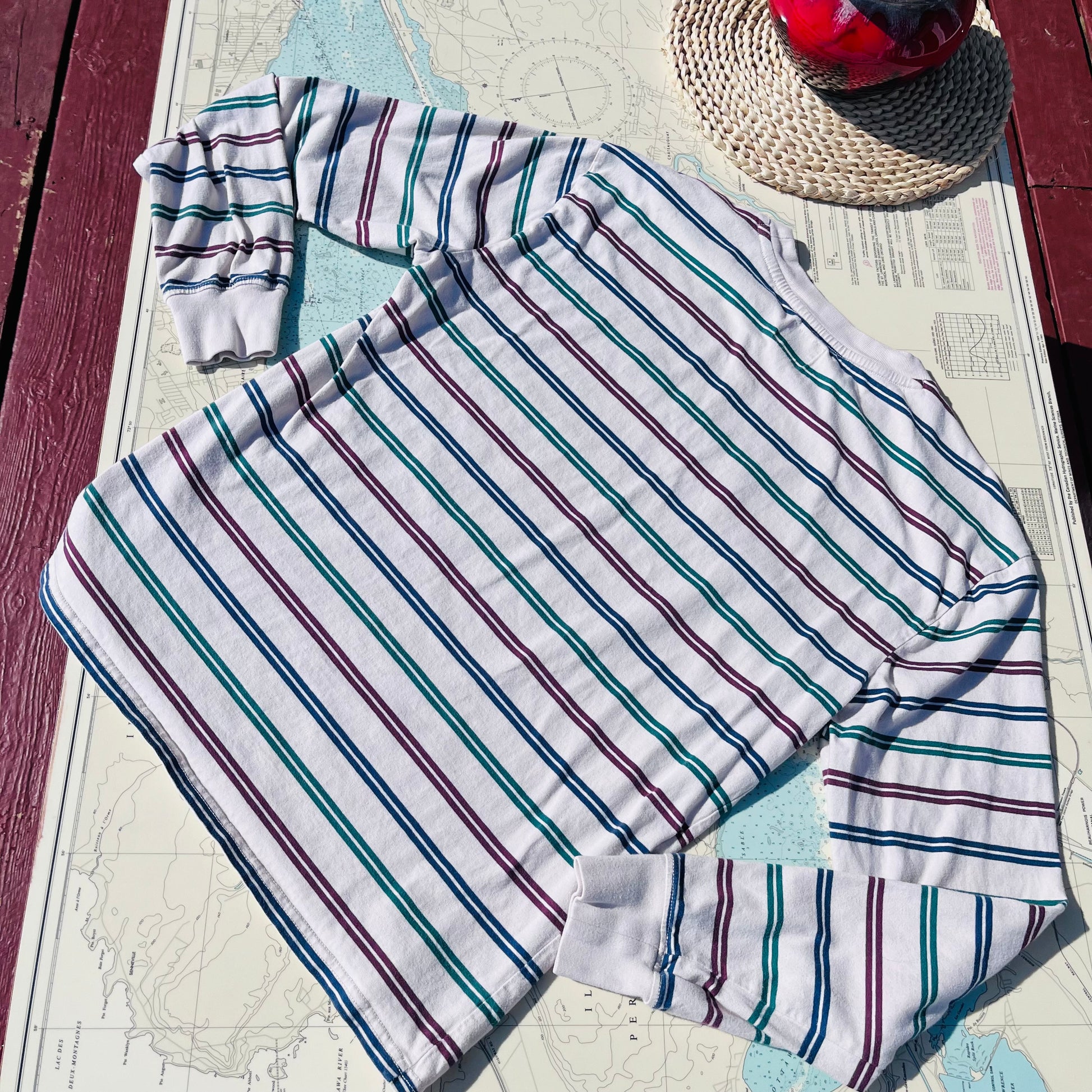 Vintage 90s style Guess embroidered logo long sleeve tee shirt. 100% cotton, tagged as a size small. Measures 19" x 20" x 24" long.