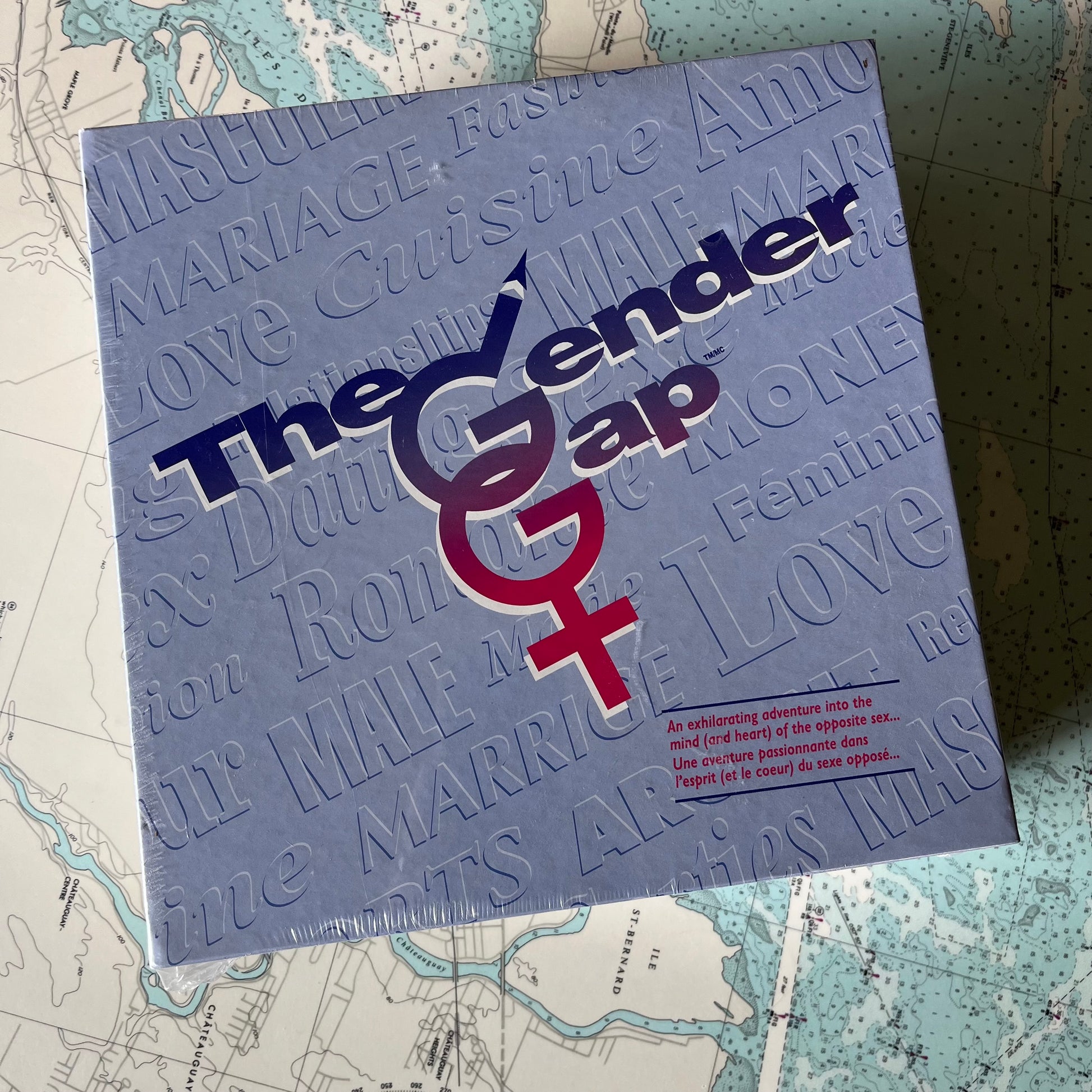 Vintage 90s The Gender Gap Game new in packaging. An exhilarating adventure into the mind (and heart) of the opposite sex.... Excellent condition, box measures approximately. 10.5" x 10.5" x 3.5".