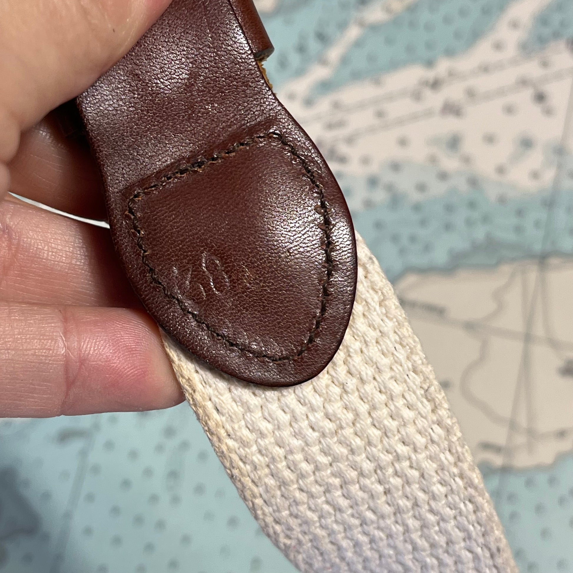 Vintage 90s Tropical Bird Parrot Pattern Belt. Leather and brass buckle with canvas belt - tagged as a size 38. Belt measures 1.25" wide, 40" long, should fit sizes 35- 38".