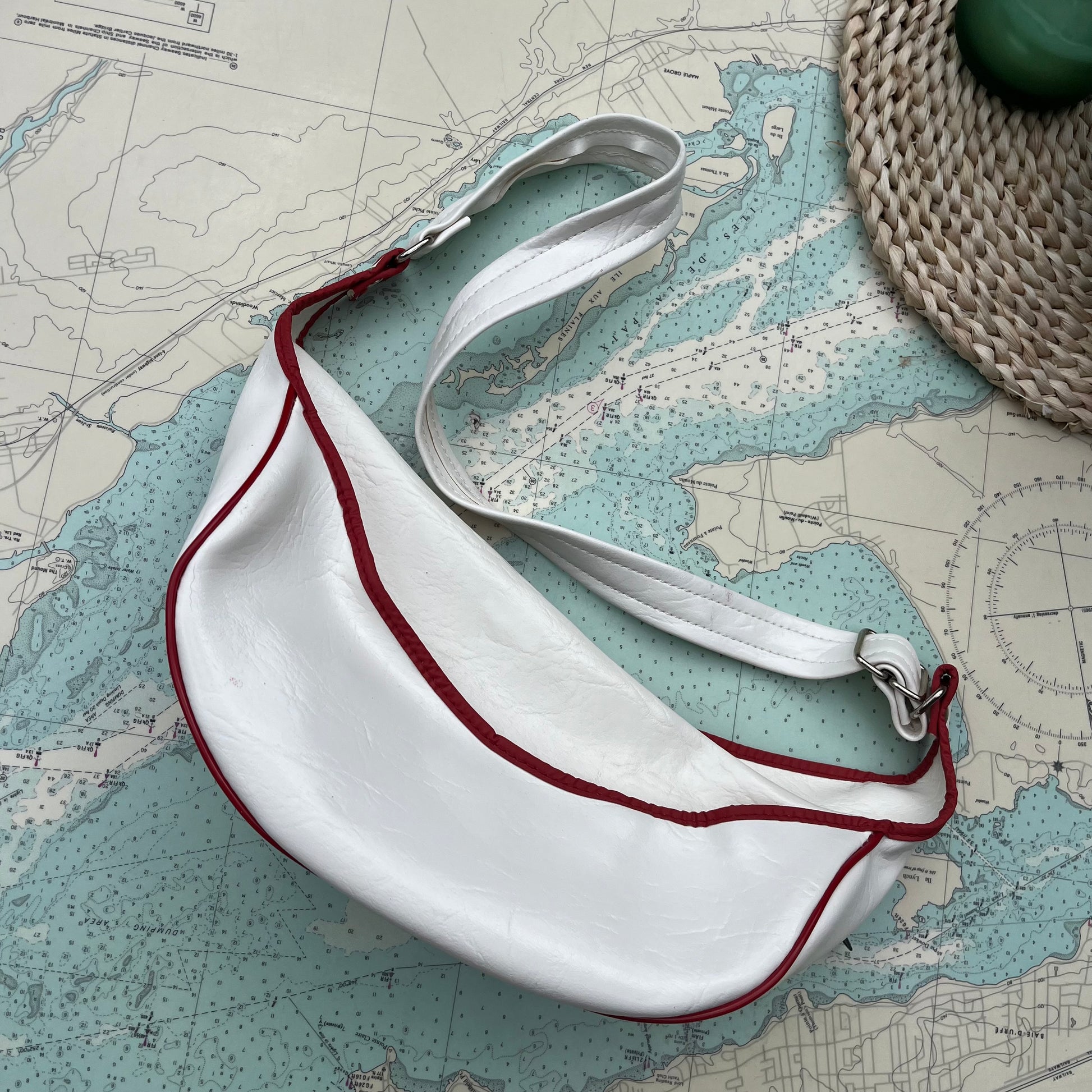 Vintage Air Canada Club SkiFari vinyl belt bag / fanny pack / waist bag. Excellent used condition, a little wear to logo, see photos. Measures approx. 18" between square rings (securing belt), bag is 4" deep by 4" wide, 12" long.
