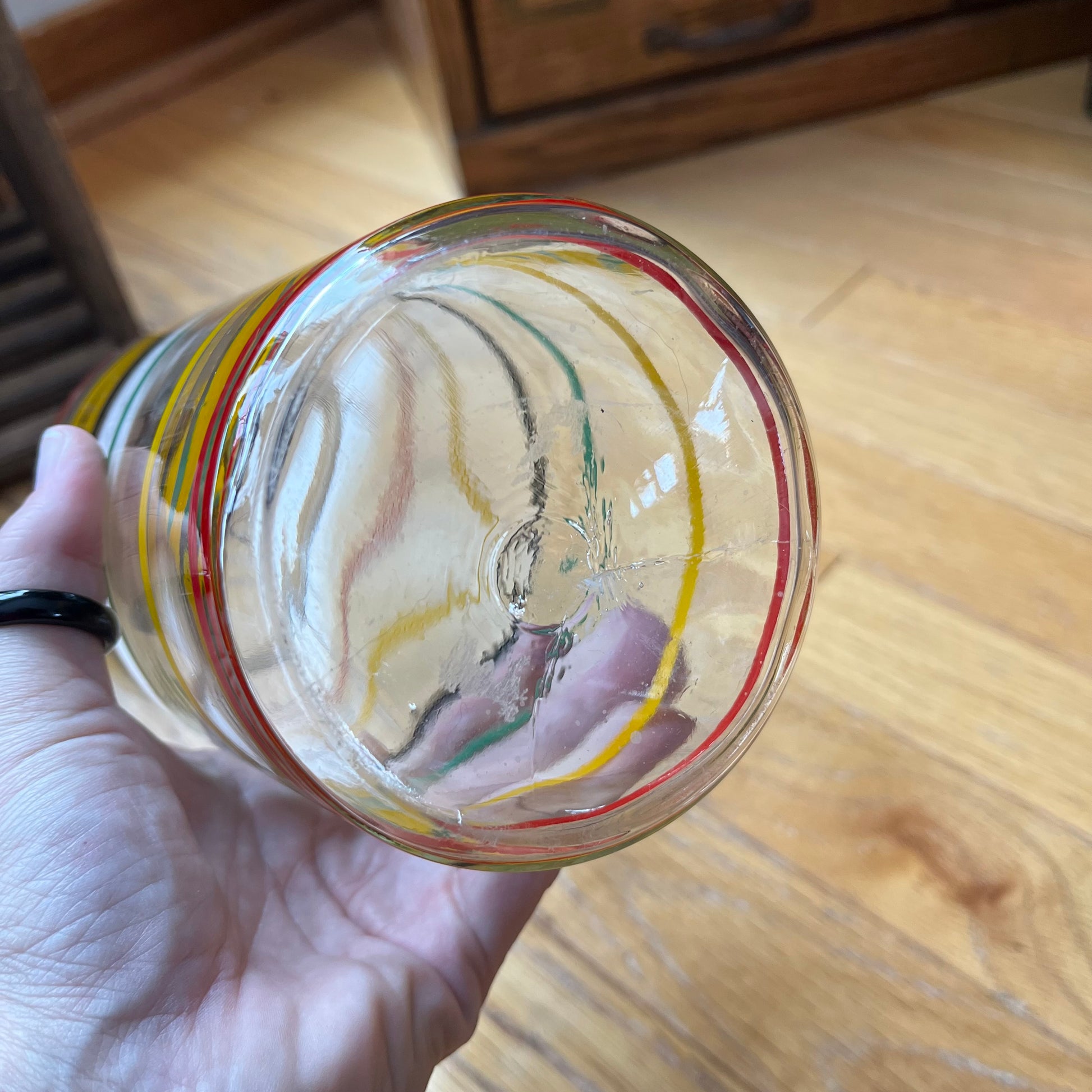 Vintage Anchor Hocking Ring Ding Rainbow Pinstripe Glass Vase