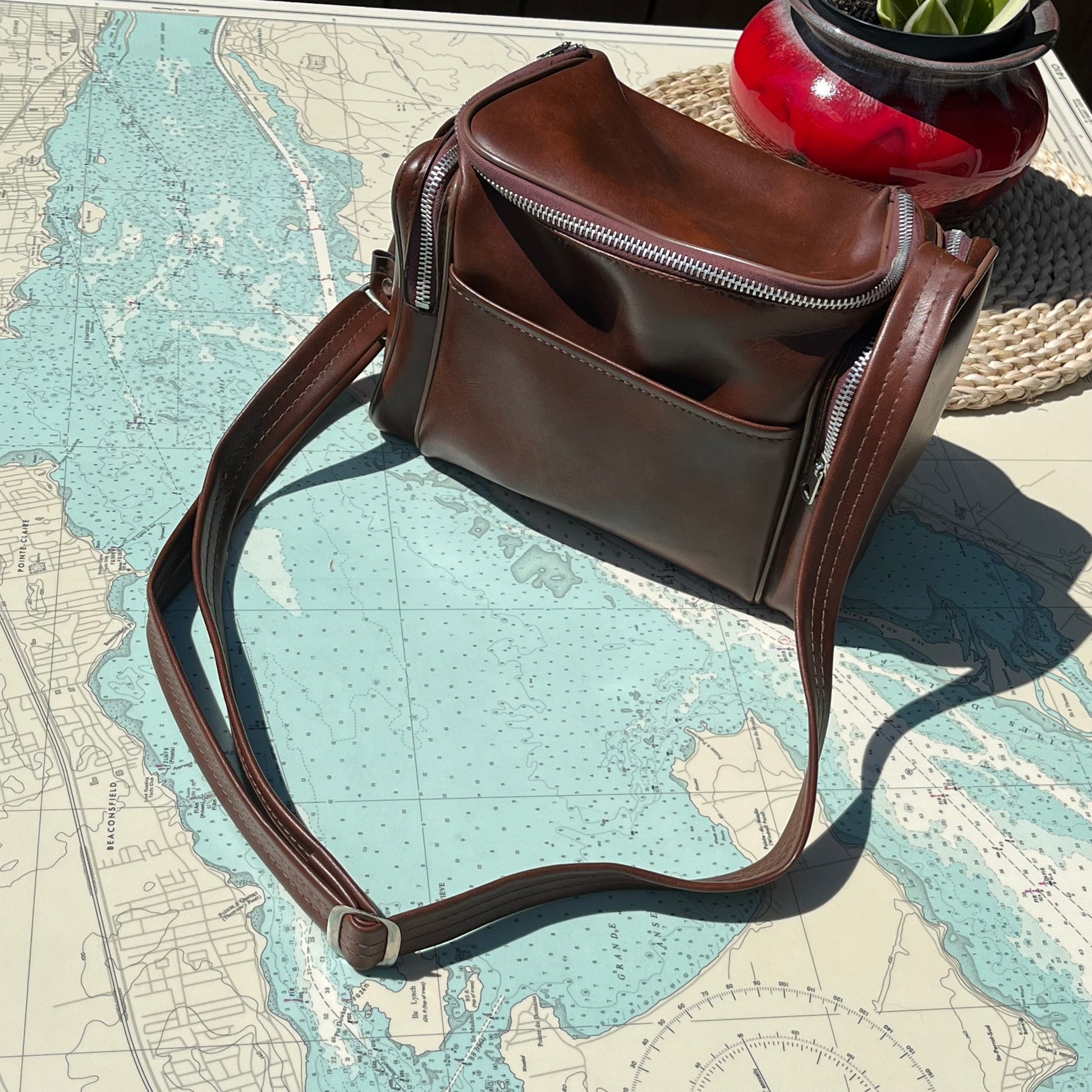 Vintage brown vinyl camera bag / carrying case.Very good used condition, all zippers work great, no major signs of wear but one spot on the back, see photos. Body measures 9" x 6" x 5".
