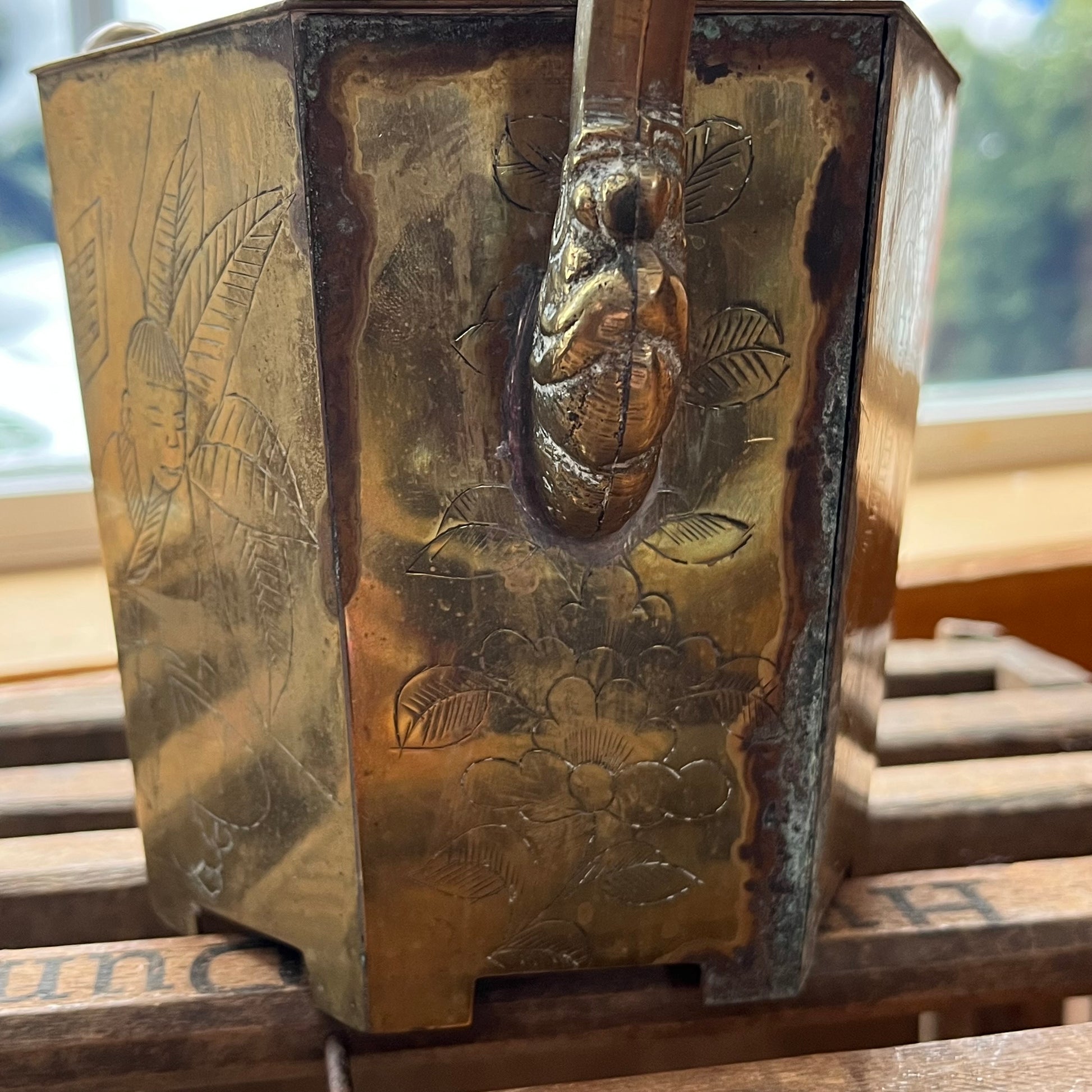 Vintage Etched Brass Chinese Teapot