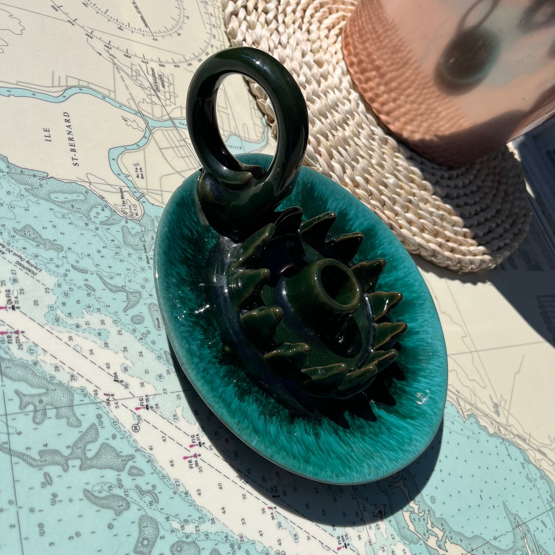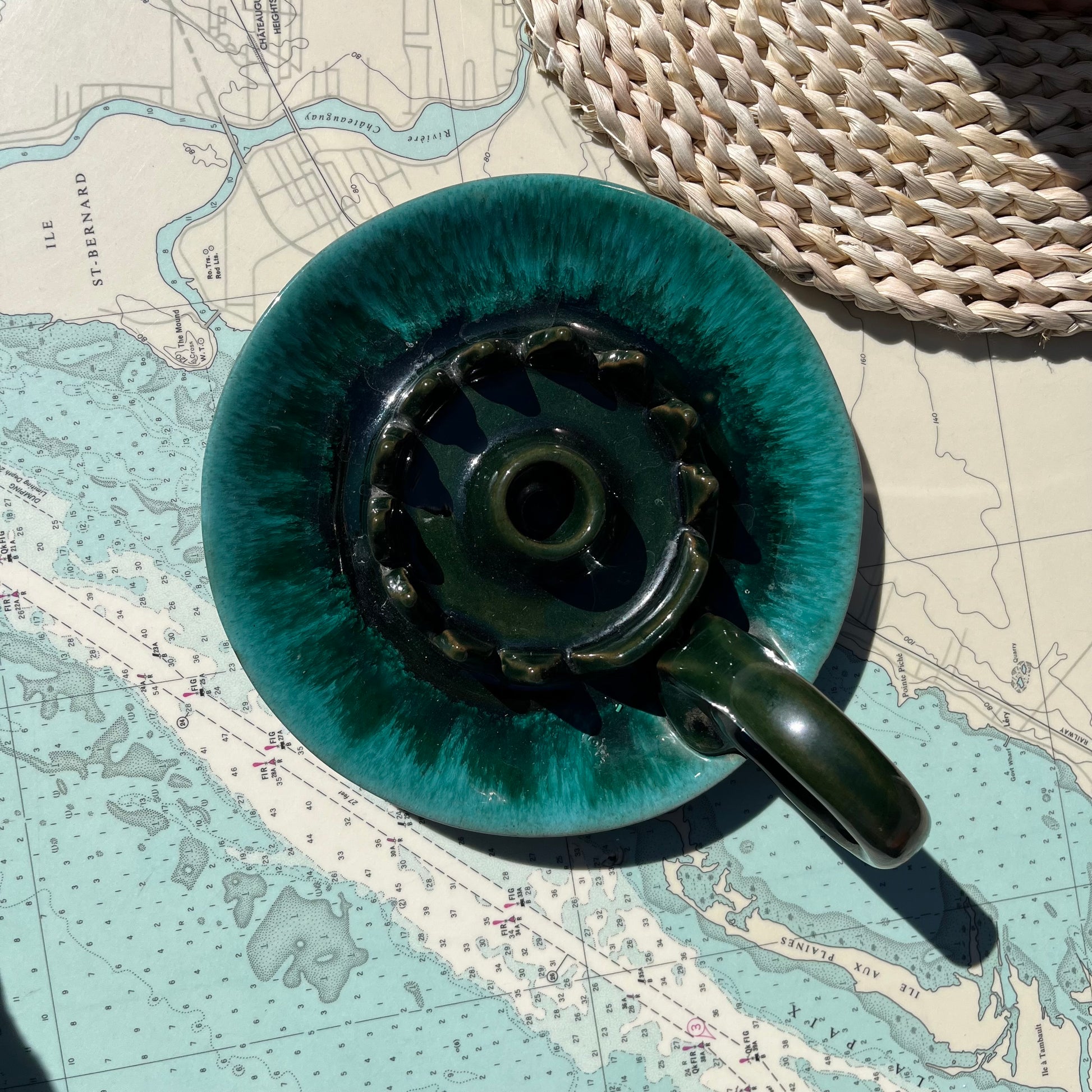 Vintage Evangeline Green Drip Pottery Tapered Candle Holder