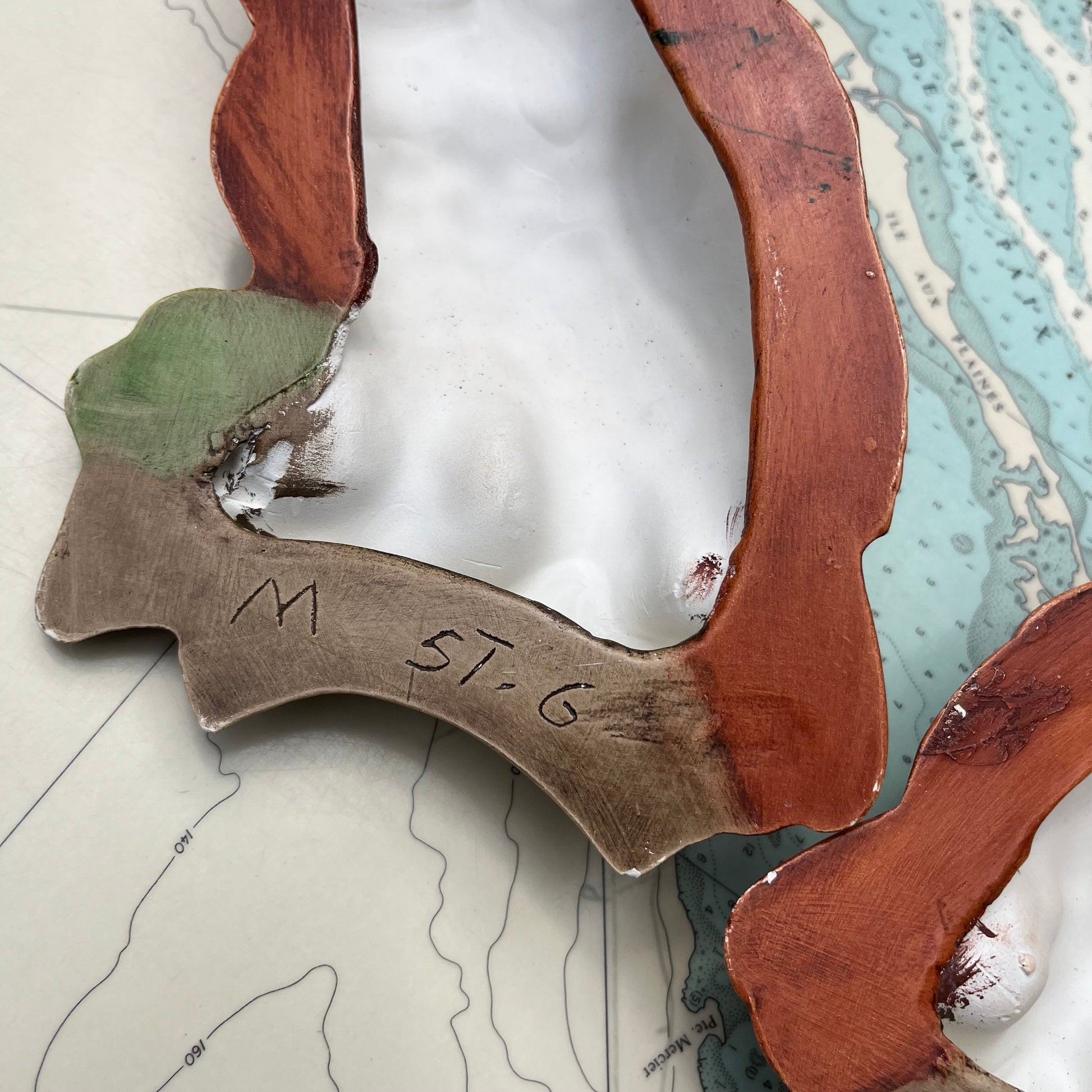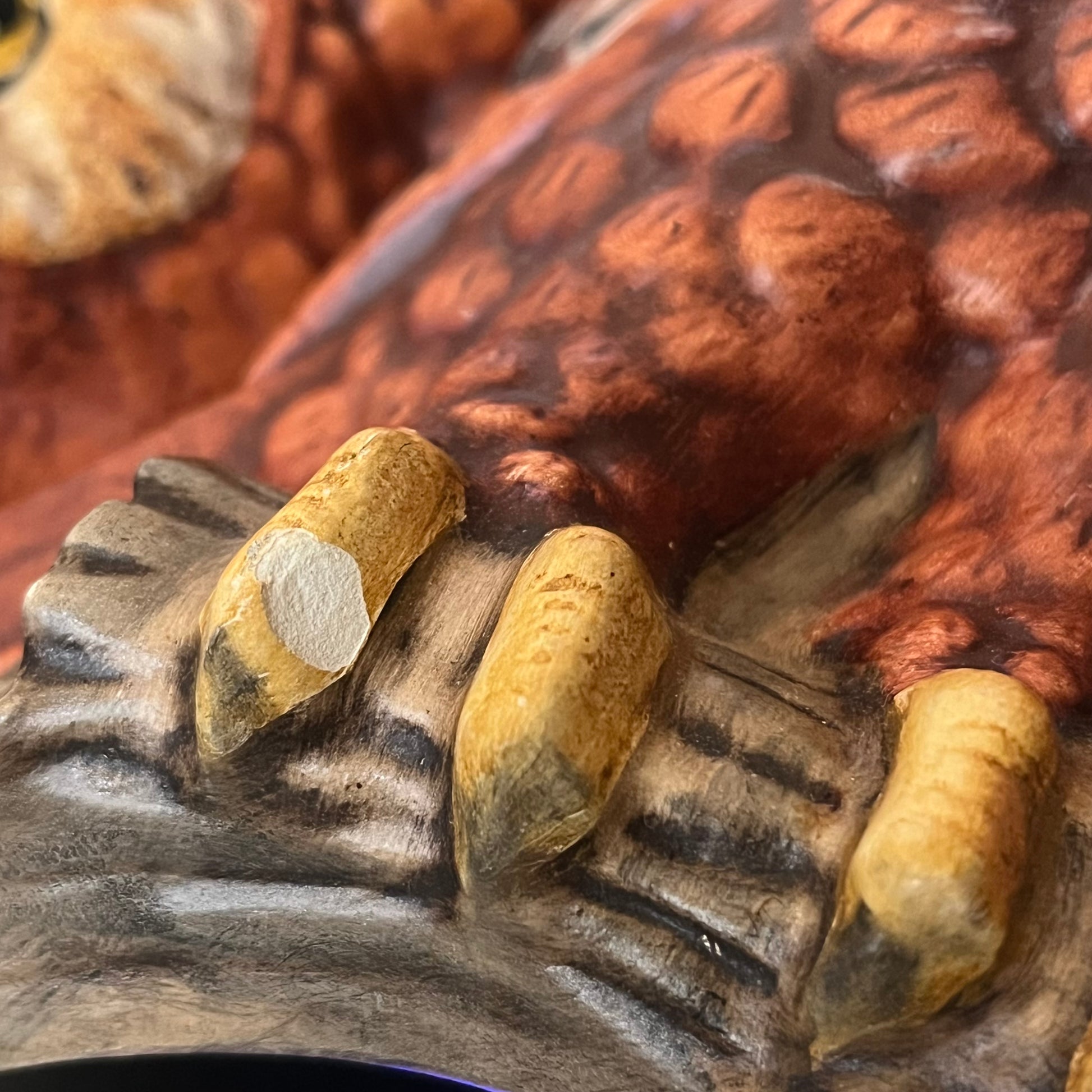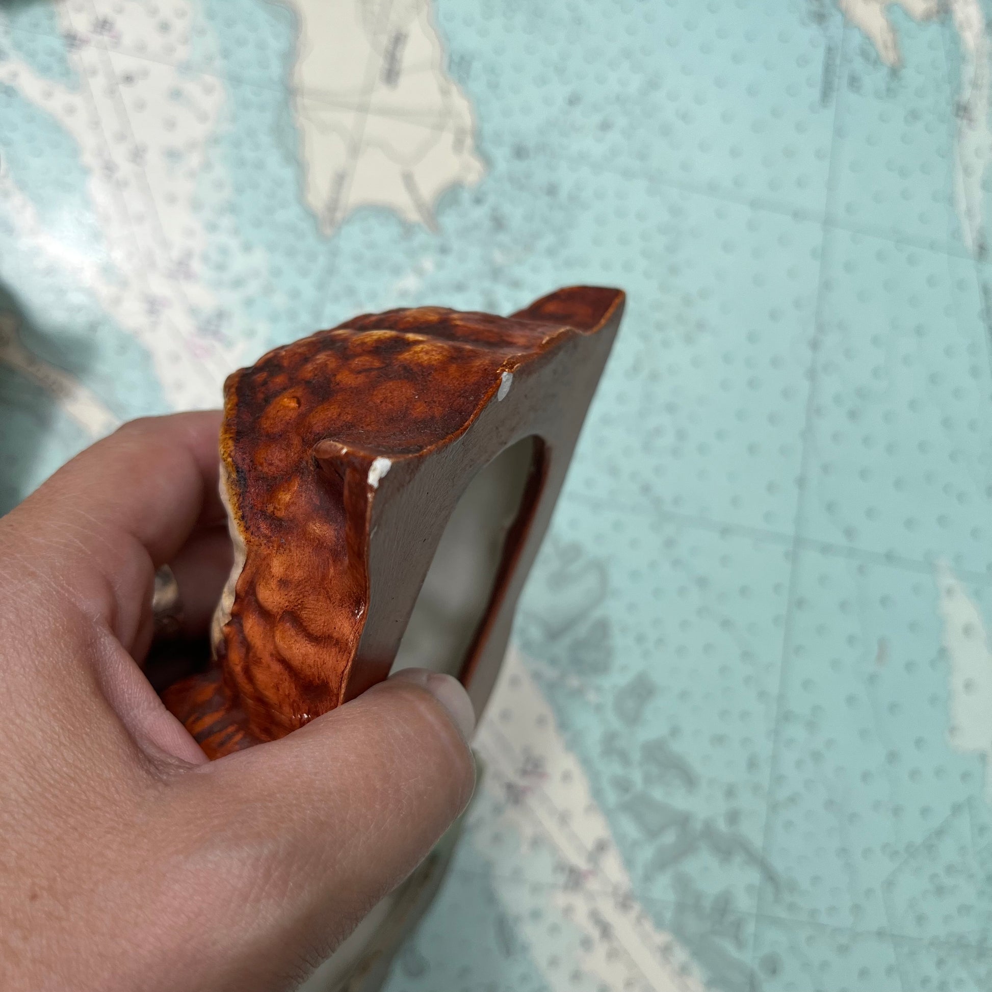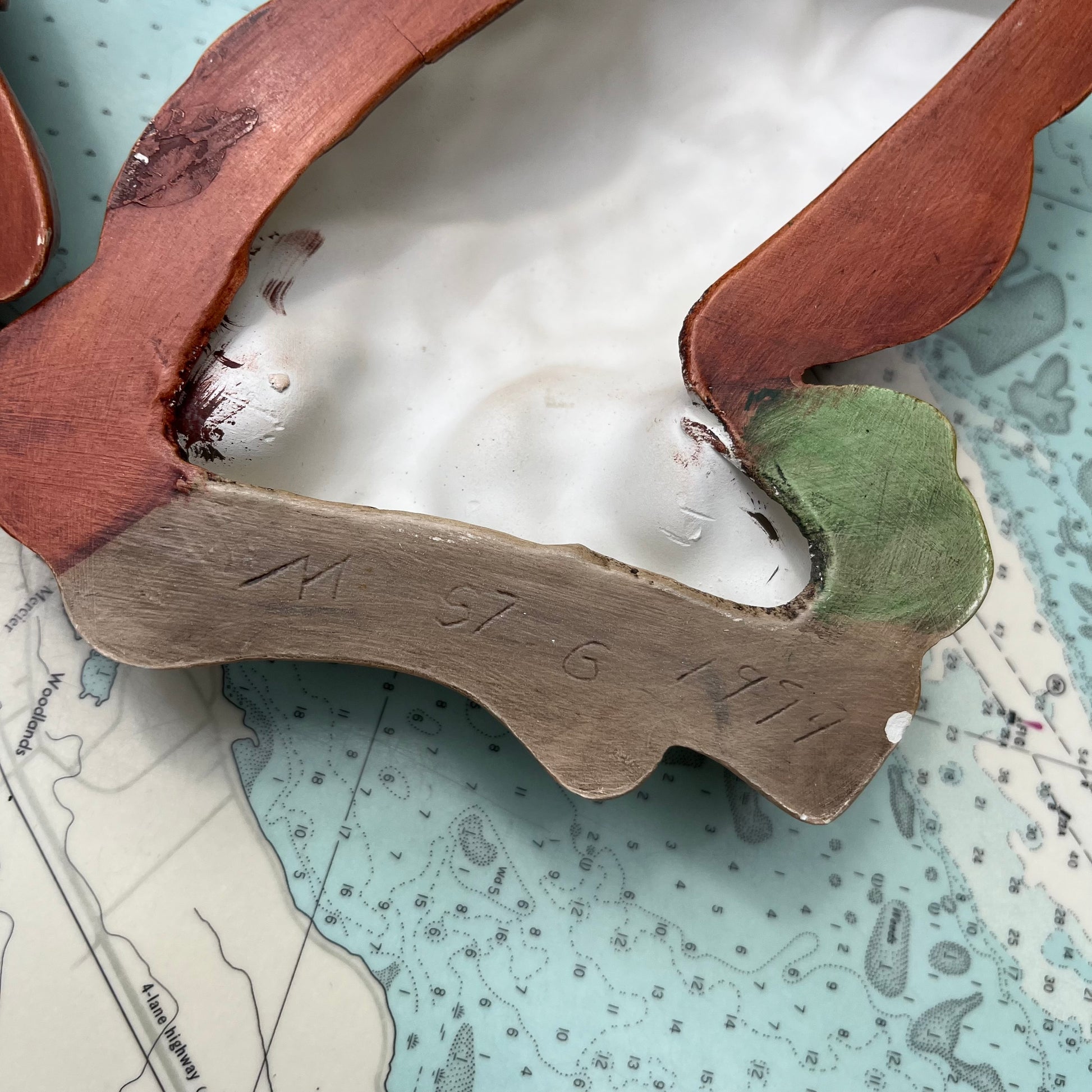Vintage hand painted hanging chalk ware owls. Signed and dated 1994, each has small chips - see photos. Each measures approximately 7.5" x 5" x 1.5".