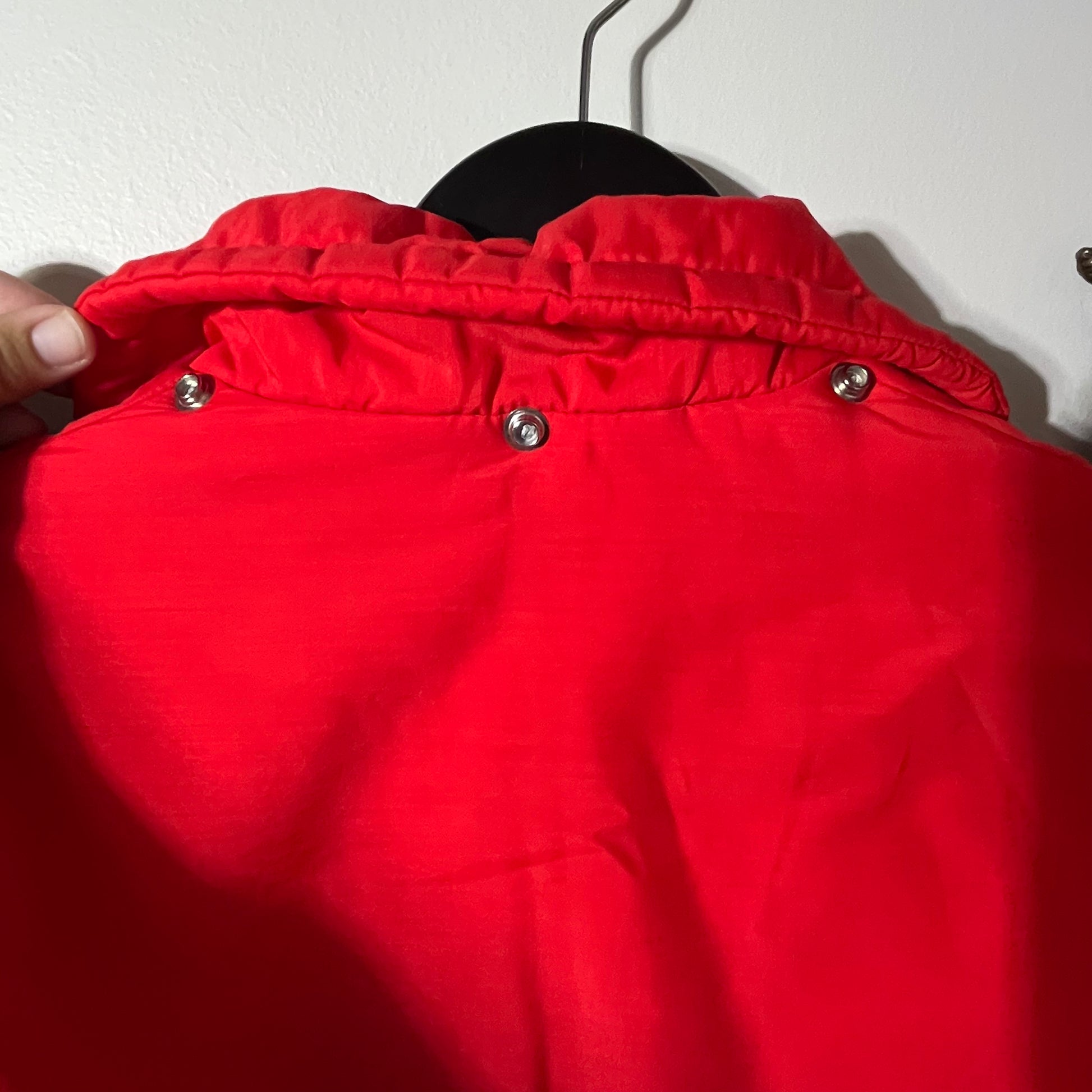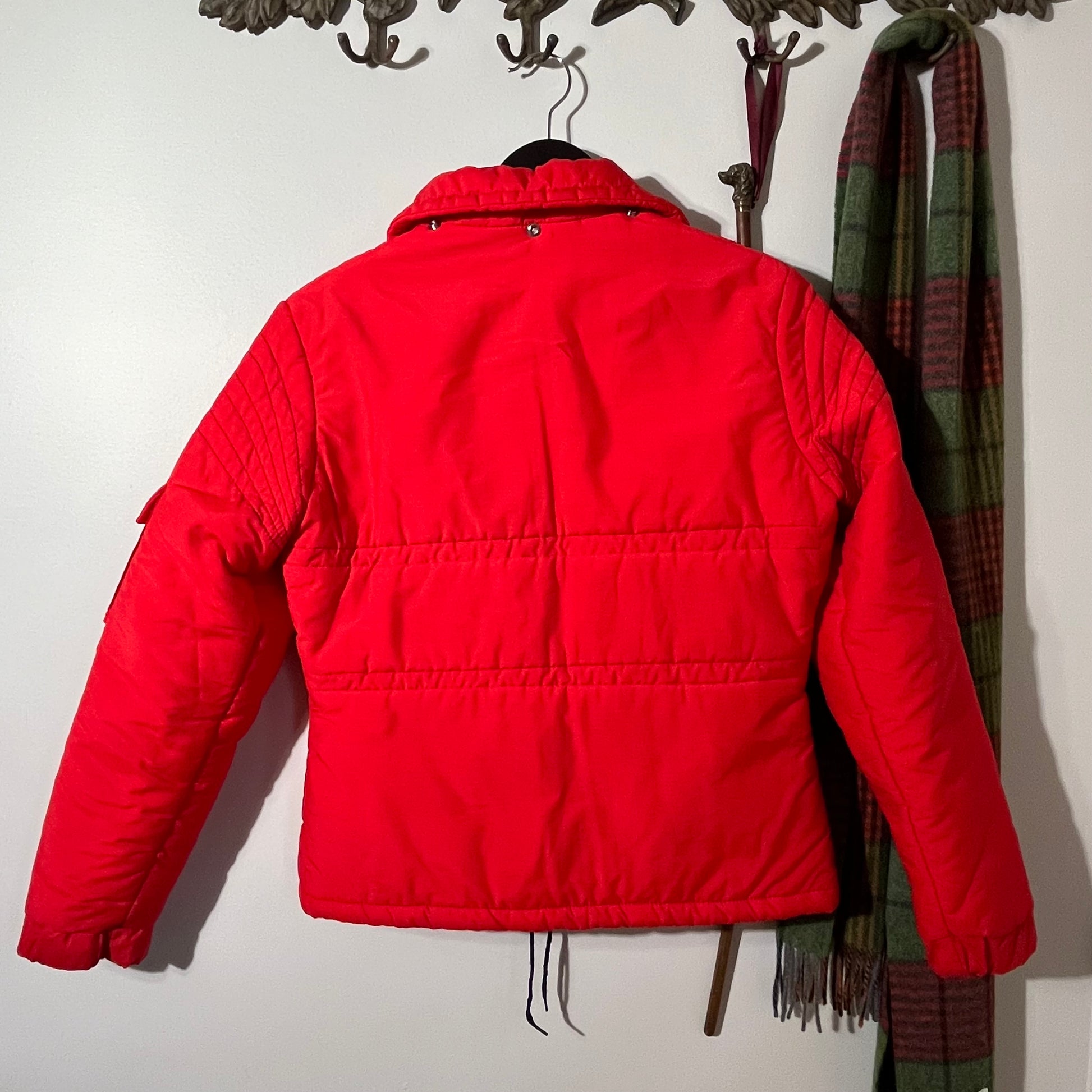 Vintage Jean Claude Killy Red Ski Bunny Jacket. Excellent condition, does seem to be missing a hood - see snaps around collar. Tagged as a Ladies size 12, fits small / medium. Measures 18" across shoulders, 18.5" pit to pit, 24" long.