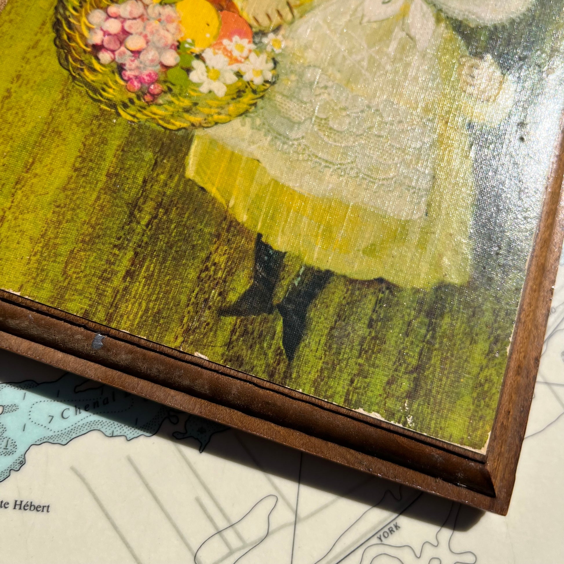 Vintage Kitschy Girl with Fruit Basket Wall Plaque