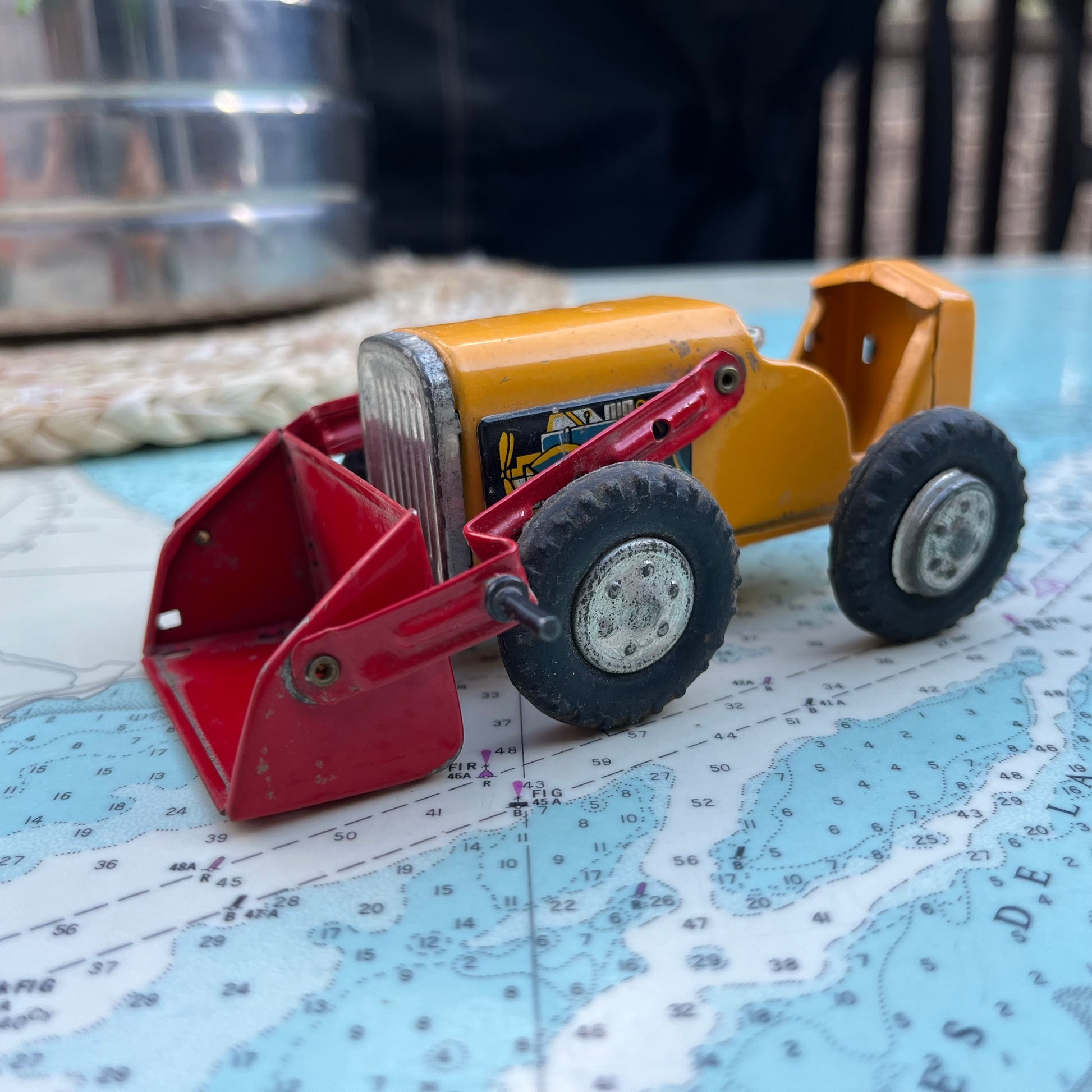 Vintage Linemar Hi-Lift Loader Tin Car / Vehicle Made in Japan. Very good used condition, although friction action has some issues. Measures approx. 5" x 3.25" x 2.25".