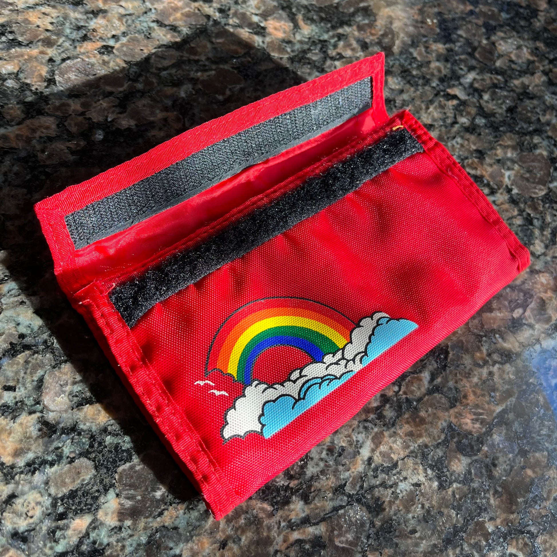 Vintage Rainbow Hook & Loop ( v3lcro) wallet. Very good used condition, great retro graphic! Shows some light wear as expected with a vintage item. Measures approx. 7.25" x 4" when closed.