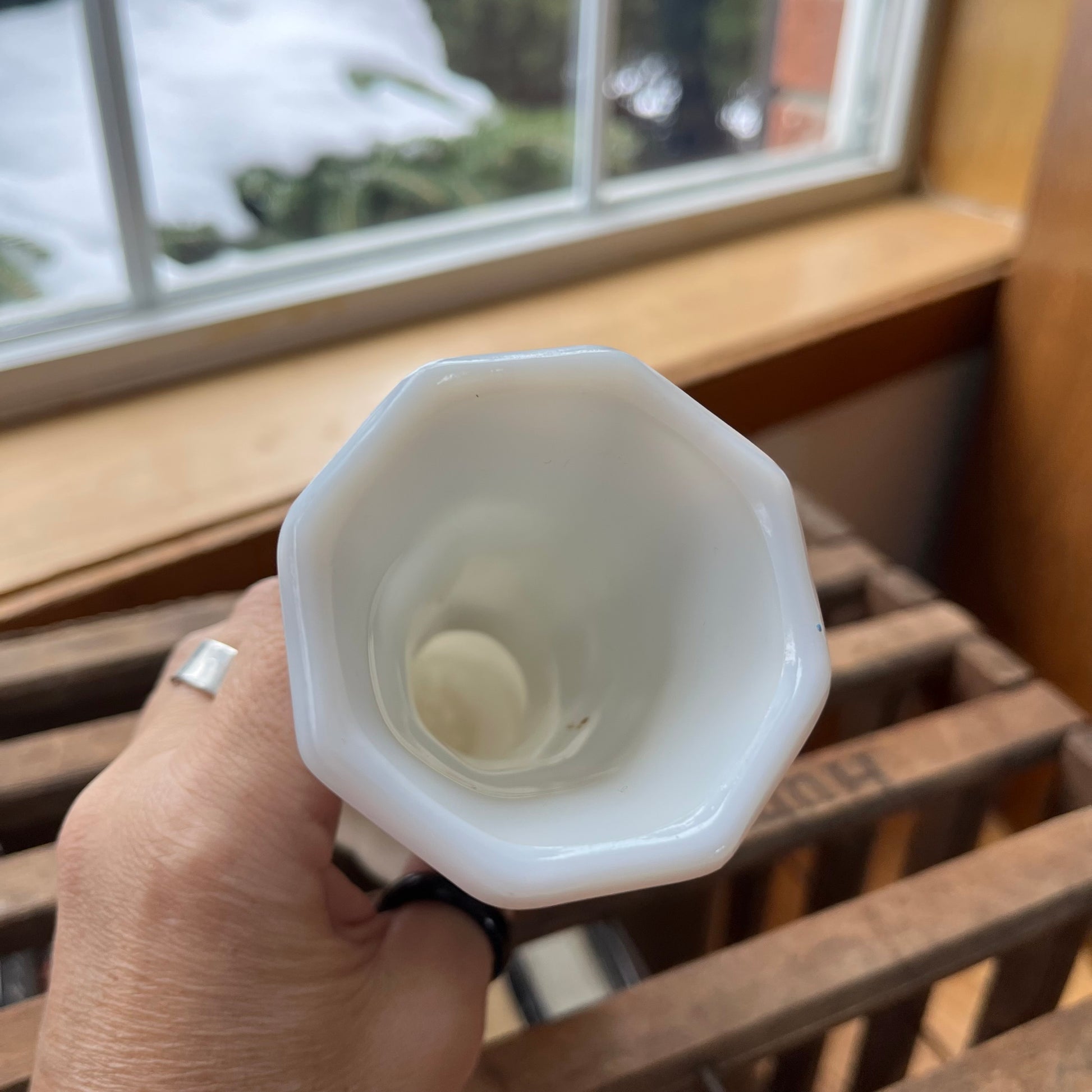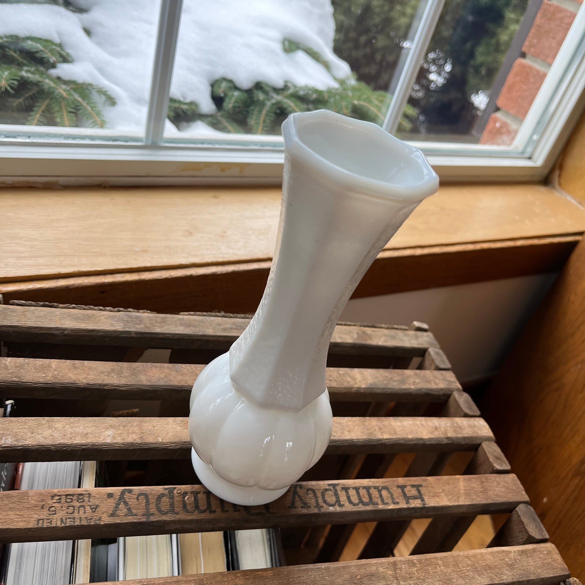 Vintage Textured Milk Glass Trumpet Vase