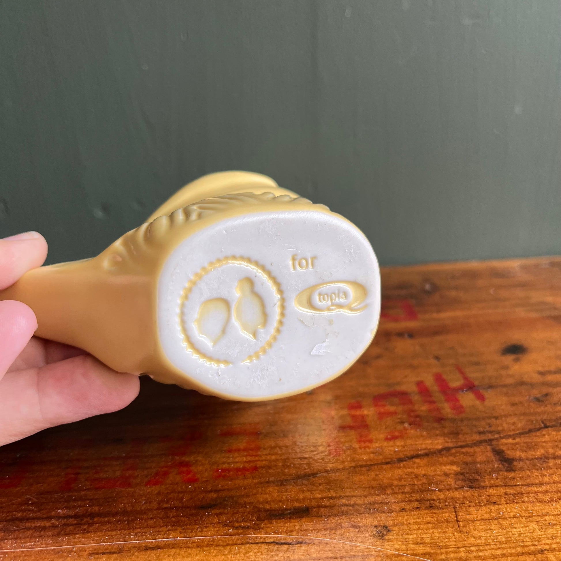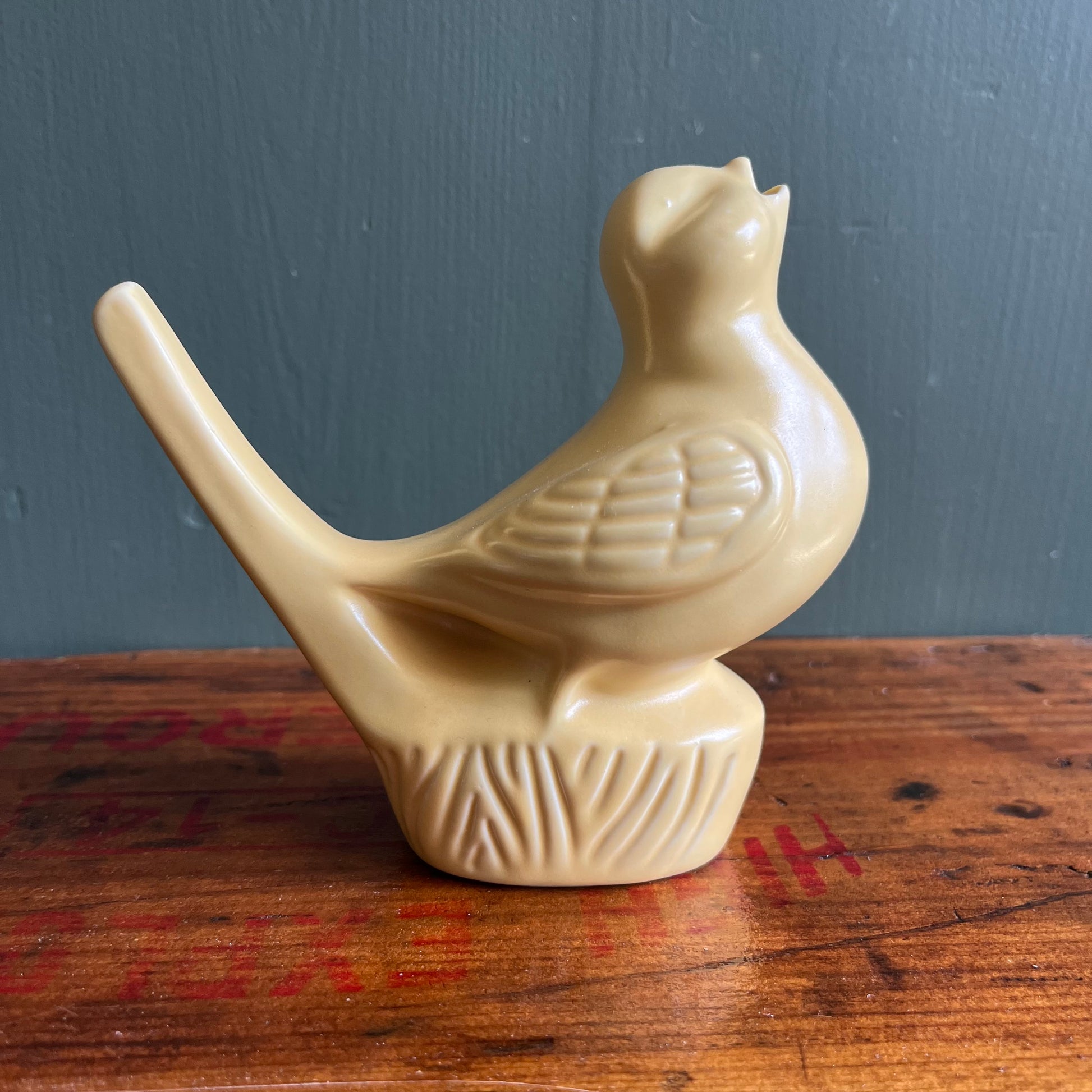 Yellow ceramic canary / bird singing figurine. Matte finish, stamped QTopia. Very good used condition, no chips or crack. Measures approx. 4.5" x 5" x 2.5".